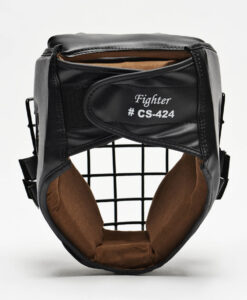 Casco Fighter in pelle con grata di ferro estraibile. L’ideale per chi pratica arti marziali con l’uso dei bastoni.